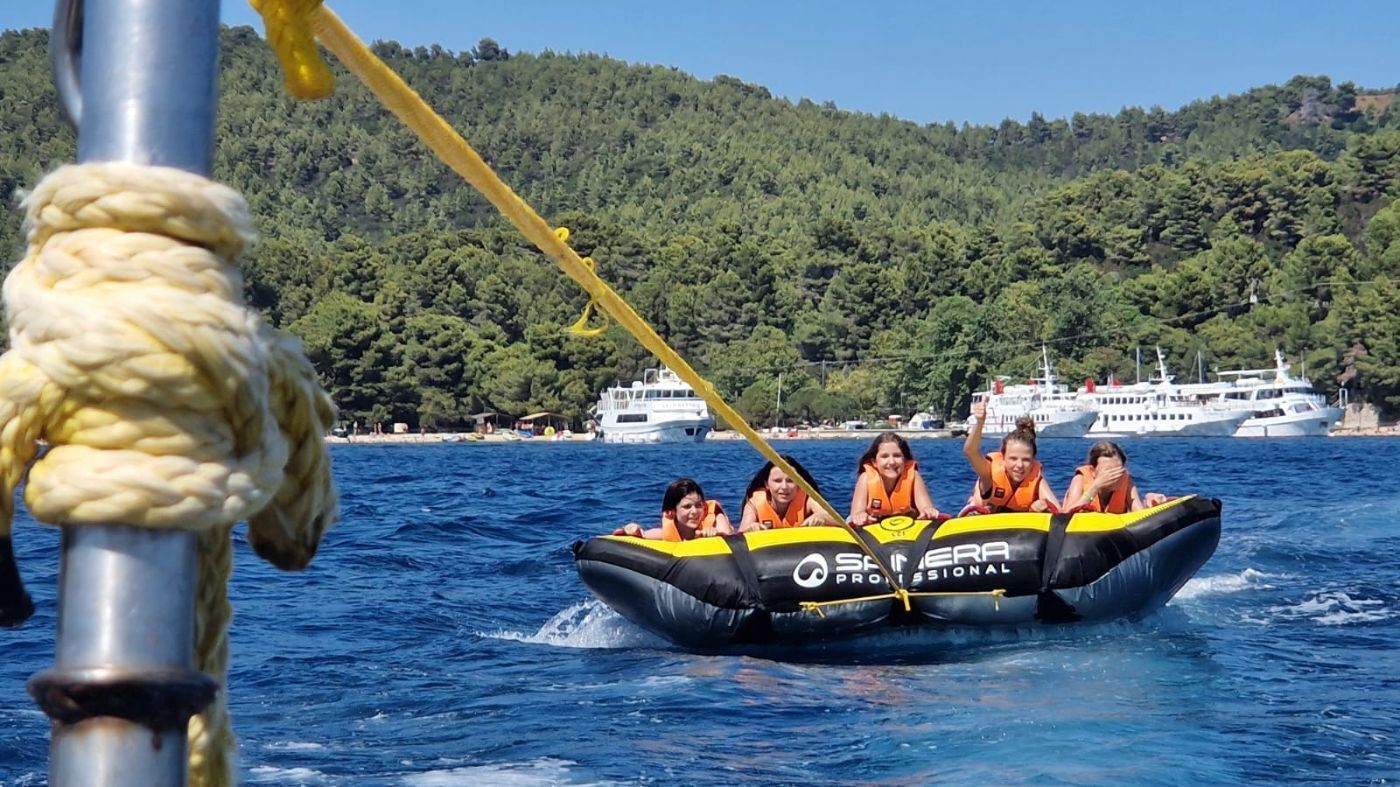 3. SKIATHOS - rejs na Wyspę Skiathos. Niezapomniany rejs statkiem z wieloma animacjami na pokładzie oraz pobyt na niezwykłej „złotej plaży”. Cena ok. 50 euro/os.